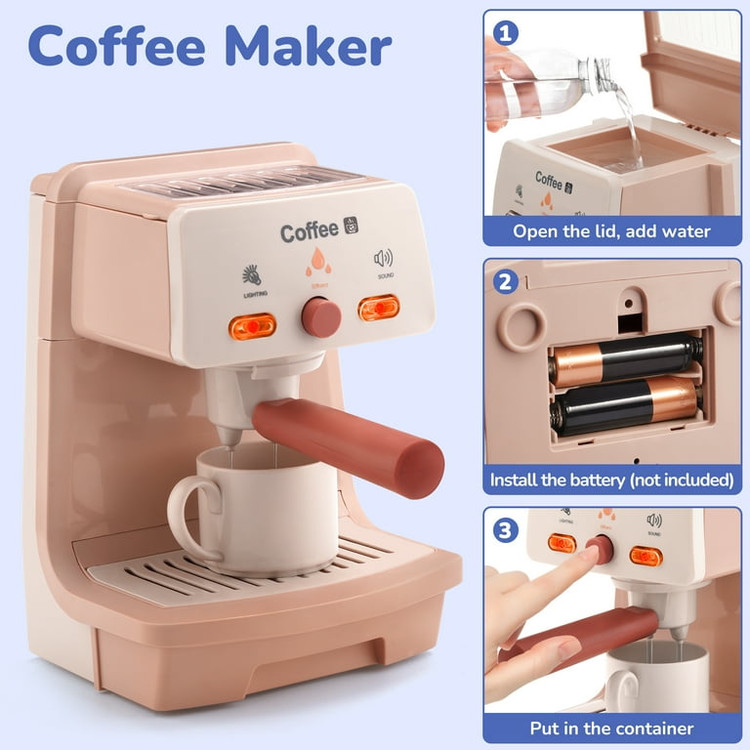 طراحی واقعگرایانه: این قهوهساز اسباببازی با توجه به جزئیات و ظاهری شبیه به یک قهوهساز واقعی طراحی شده است. دکمههای قابل فشار دادن، دسته متحرک و قطعات جانبی همگی به کودکان این حس را میدهند که در حال تهیه یک فنجان قهوه واقعی هستند.