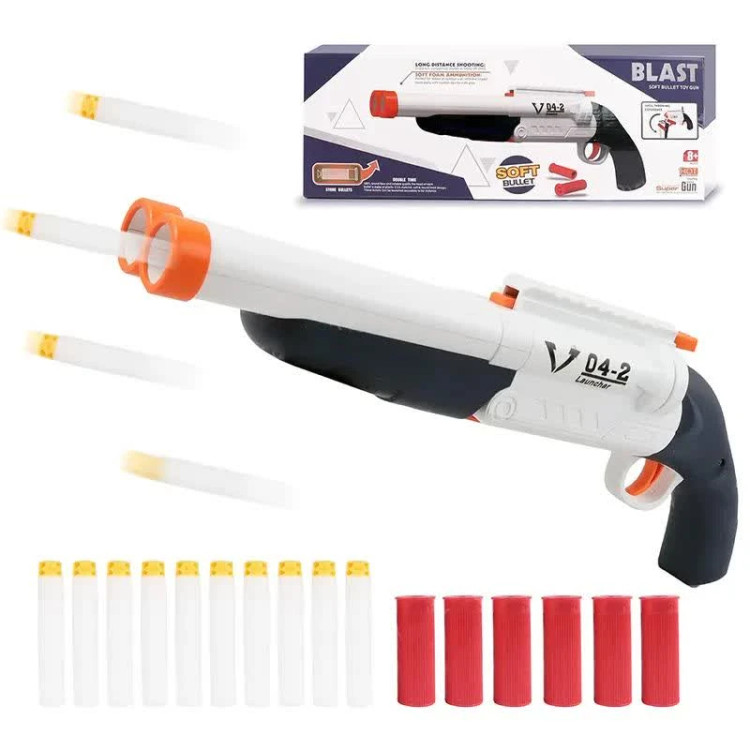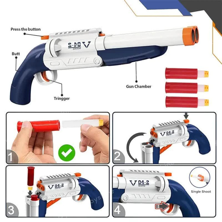 فنگ شاتگان پوکه پران SUPER GUN قابلیت پرتا تیر در برد 8 متر را دارد. ابتدا تفنگ را با کمک اهرم بالایی که دارد باز کنید تیر ها را درون پوکه قرار دهید و با قرار دادن پوکه ها در جای مخصوص و بستن تفنگ آن را در حالت آماده به شلیک قرار میگیرد. تفنگ شاتگان پوکه پران SUPER GUN قابلیت شلیک هم به صورت تک تیر و دو تایی دارد با باز کردن تفنگ پوکه ها به بیرون پرتاب میشوند. این تفنگ اسباب بازی شامل 10 عدد تیر فومی نرم EVA با سر چسبونکی و 6 عدد پوکه است. تیرها برای کودکان ساخته شده اند که سبک وزن هستند و به کسی آسیب نمی رسانند و یک انتخاب ایده آل برای کودکانی است که عاشق بازی های جنگی با اسلحه در داخل خانه، حیاط و طبیعت هستند. توجه کنید که به سمت صورت شلیک نکنید و برای کودکان زیر 8 سال باید زیر نظر بزرگسالان اسلحه بازی کنند. این بلستر به شما این امکان را می دهد که از فاصله دور یا در فاصله نزدیک به حریفان شلیک کنید. تفنگ اسباب بازی کودک ساخته شده از پلاستیک با درجه کیفی بالا و فاقد مواد سمی است و برای نقش بازی کودکان و بازیهای بیرون از خانه، بازی وانمودی بسیار ایده ال است که مهارتهای حرکتی، تخیل و خلاقیت کودکان را توسعه میدهد.