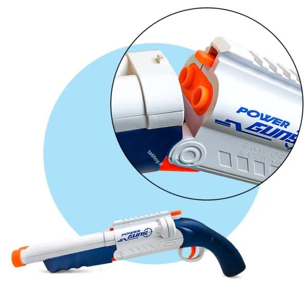 فنگ شاتگان پوکه پران SUPER GUN قابلیت پرتا تیر در برد 8 متر را دارد. ابتدا تفنگ را با کمک اهرم بالایی که دارد باز کنید تیر ها را درون پوکه قرار دهید و با قرار دادن پوکه ها در جای مخصوص و بستن تفنگ آن را در حالت آماده به شلیک قرار میگیرد. تفنگ شاتگان پوکه پران SUPER GUN قابلیت شلیک هم به صورت تک تیر و دو تایی دارد با باز کردن تفنگ پوکه ها به بیرون پرتاب میشوند. این تفنگ اسباب بازی شامل 10 عدد تیر فومی نرم EVA با سر چسبونکی و 6 عدد پوکه است. تیرها برای کودکان ساخته شده اند که سبک وزن هستند و به کسی آسیب نمی رسانند و یک انتخاب ایده آل برای کودکانی است که عاشق بازی های جنگی با اسلحه در داخل خانه، حیاط و طبیعت هستند. توجه کنید که به سمت صورت شلیک نکنید و برای کودکان زیر 8 سال باید زیر نظر بزرگسالان اسلحه بازی کنند. این بلستر به شما این امکان را می دهد که از فاصله دور یا در فاصله نزدیک به حریفان شلیک کنید. تفنگ اسباب بازی کودک ساخته شده از پلاستیک با درجه کیفی بالا و فاقد مواد سمی است و برای نقش بازی کودکان و بازیهای بیرون از خانه، بازی وانمودی بسیار ایده ال است که مهارتهای حرکتی، تخیل و خلاقیت کودکان را توسعه میدهد.